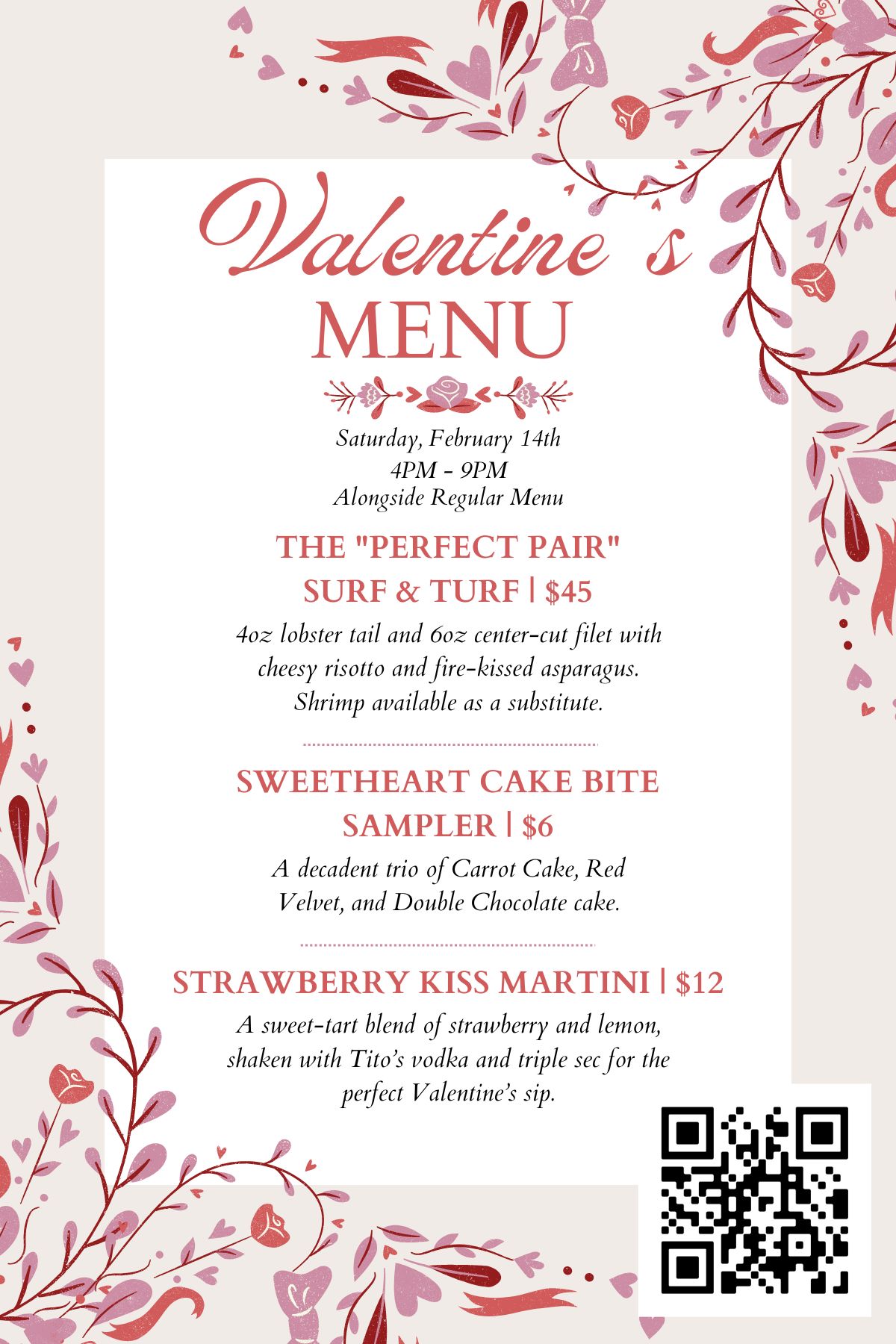 Join us this Valentine’s Day, Saturday, February 14th, for an evening of romance and exceptional dining. From 4:00 PM with last seating at 8:30 PM, we are serving up a curated special menu designed to celebrate the “Perfect Pair”. This … Read More