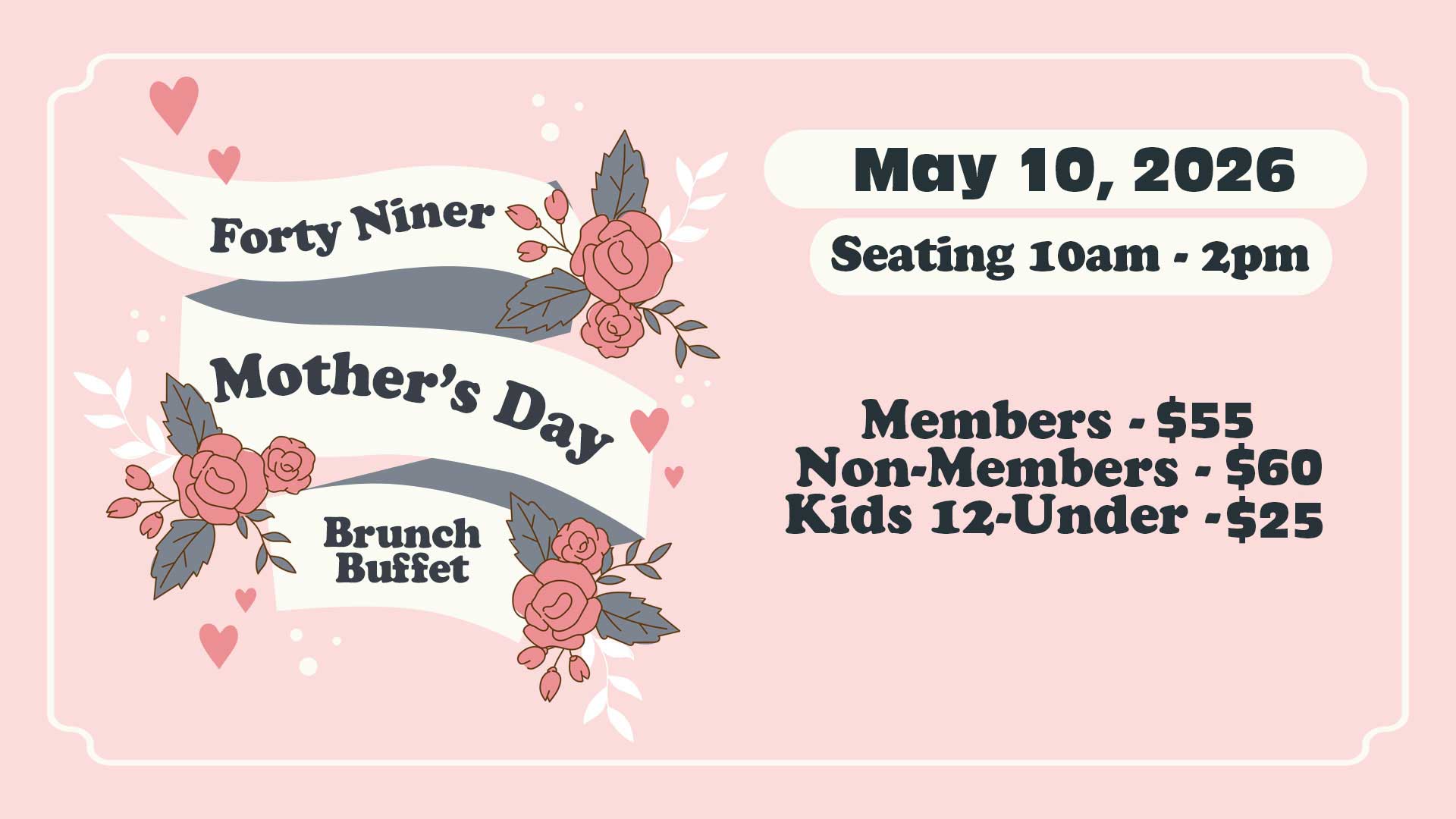 Celebrate the special woman in your life at Forty Niner’s delightful Mother’s Day Brunch Buffet on Sunday, May 10th, 2026! Treat Mom to a memorable experience with our exquisite brunch spread, available for seating between 10:00 AM and 2:00 PM. … Read More